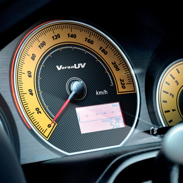 O verniz produz acabamentos brilhantes e foscos. Várias camadas de verniz podem ser aplicadas para criar estampas e texturas tridimensionais, além disso, o software VersaWorks Dual RIP já vem com 72 padrões de textura prontos para uso.